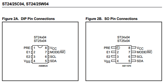 This specification covers a range of 4 Kbits IC bus EEPROM products, the ST24/25C04 and the ST24/25W04. In the text, products are referred to as ST24/25×04, where “x” is: “C” for Standard version and “W” for hardware Write Control version.
