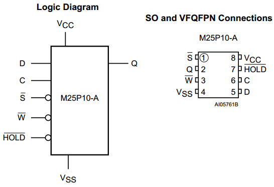 The M25P10-A is a 1 Mbit (128K x 8) Serial Flash Memory, with advanced write protection mechanisms, accessed by a high speed SPI-compatible bus.
