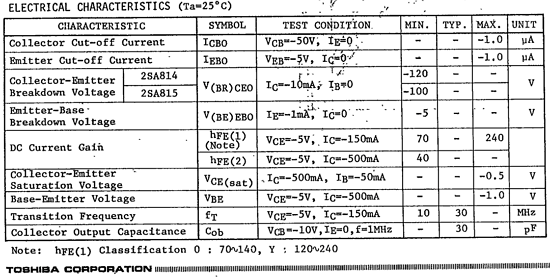 V ceo = -120V (2SA814), V ceo = -100V (2SA815)