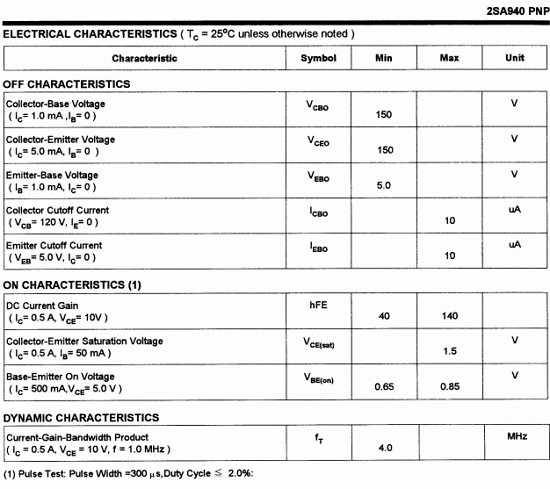 2SA940 transistor is designed for use in general purpose power amplifier, vertical output application.