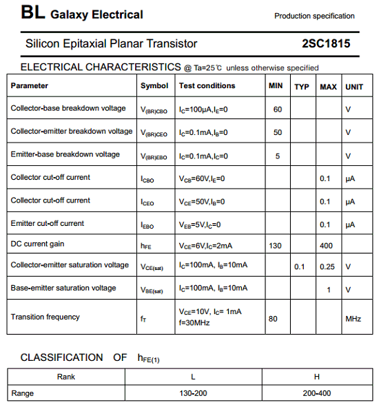 Part Number : 2SC1815