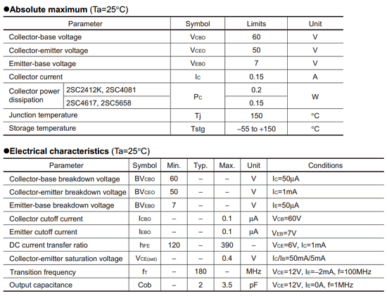 2SC2412K,2SC4081,2SC4617,2SC5658,C2412K