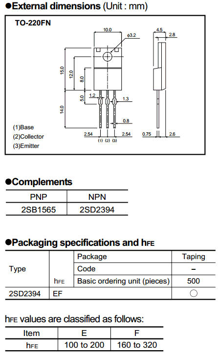 2) Excellent electrical characteristics of DC current Gain hFE.