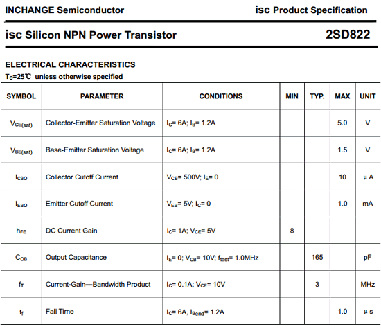 Part Number : 2SD822