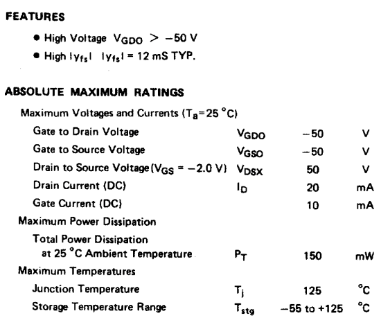 Audio frequency amplifier, N-channel Silicon Junction Field Effect Transistor Mini Mold.