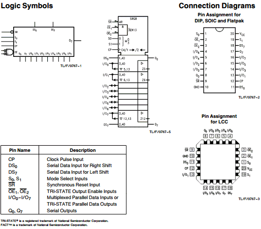 Function : 8-Bit Universal Shift/Storage Register with Synchronous Reset and Common I/O Pins