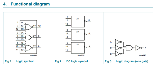 The 74HC27, 74HCT27 is a triple 3-input NOR gate. Inputs include clamp diodes. This enables the use of current limiting resistors tointerface inputs to voltages in excess of VCC.