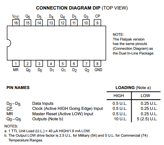 Function : Hex D flip-flop / LOW POWER SCHOTTKY