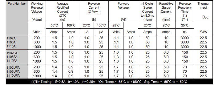 Function : 1.4 A – 1.5 A Forward Current 70 ns – 3000 ns Recovery Time