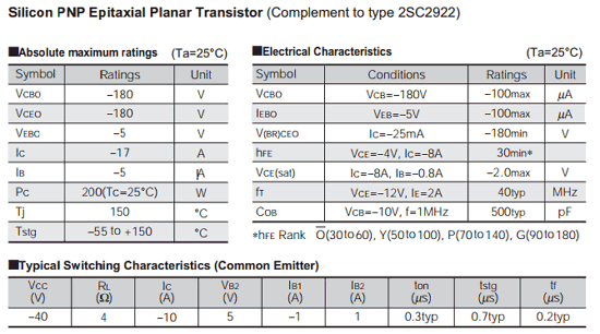 Function : Silicon PNP Epitaxial Planar Transistor(Complement to type 2SC2922) / Audio and General Purpose