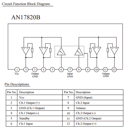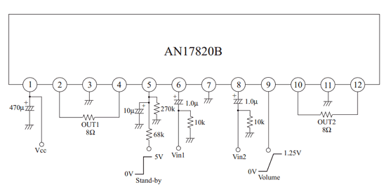 * BTL 7.5W x 2ch Power Amplifier with Standby Function and Volume Function