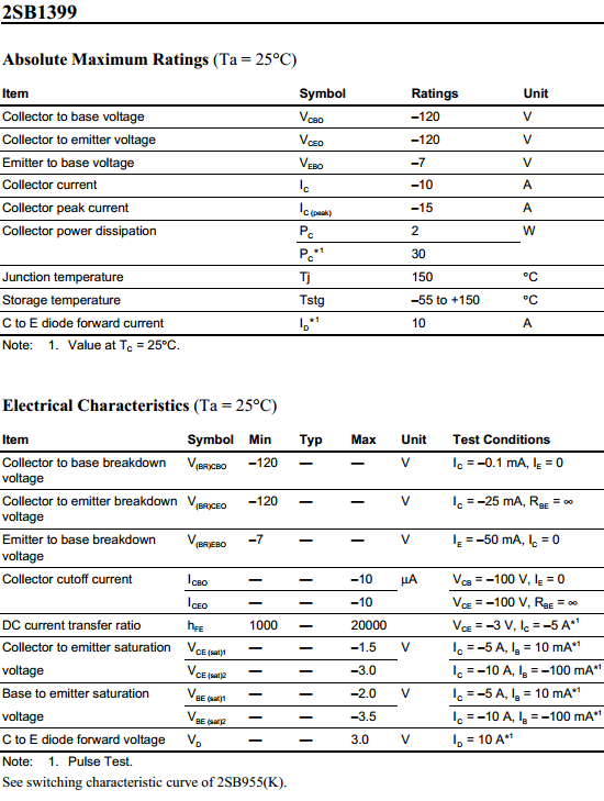 Function : B1399, 2SB1399 / Silicon PNP Triple Diffused