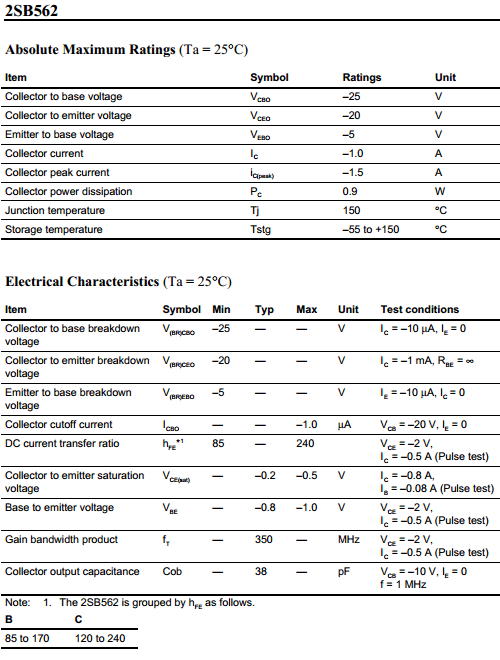 Function : 2SB562, B562 / Silicon PNP Epitaxial