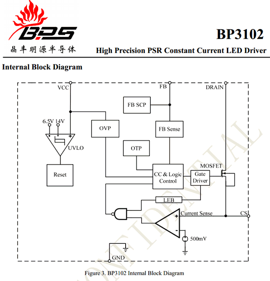 The BP3102 is a high precision primary-side feedback and regulation controller for LED lighting, it operates in constant current control mode and is designed to work in inductor current discontinuous conduction mode and extremely suitable for flyback convertor under universal input, the output power of system should be less than 5W.