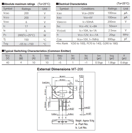 Function : Silicon NPN Triple Diffused Planar Transistor (Complement to type 2SA1494)