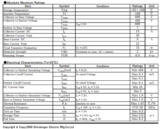 Function :2SC4582, C4582 / 15A NPN Switching Power Transistor
