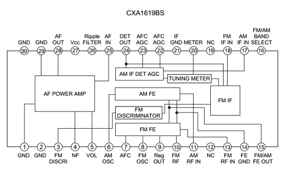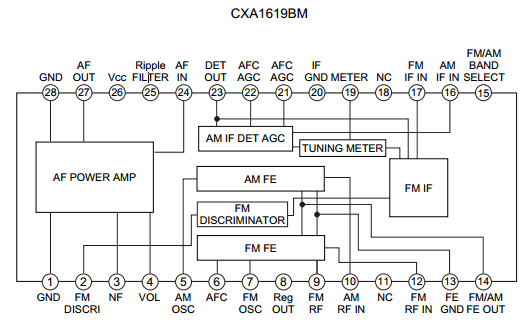 Function : One-chip FM/AM radio IC / CXA1619BM, CXA1619BMBS