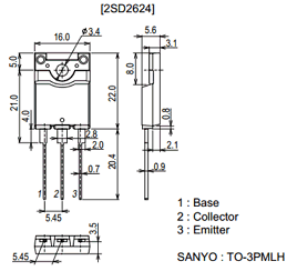 Function :NPN transistor on-chip damper diode for color TV horizontal deflection output applications, 1500V, 6A