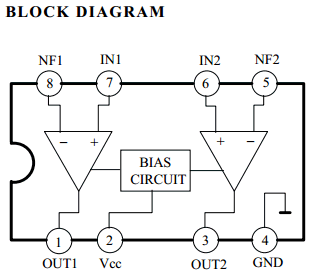 Function : D2822 / DUAL POWER AMPLIFIER / DIP 8 Pin