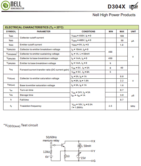 Function : High Voltage Fast-Switchong NPN PowerTransistor / 12A / 400V / 100W