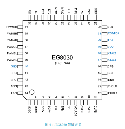 EG8030 is a digital, fully functional control of its own dead-phase pure sine wave inverter generator chip, you can configure four workers Modes can be used in DC-DC-AC power conversion architecture or two DC-AC single-stage frequency transformer boost conversion architecture. External 16MHz crystal oscillator Device that can produce high-precision, distortion and harmonics are very small three-phase SPWM signal. And have the perfect sampling mechanism that can capture the current signal, temperature.