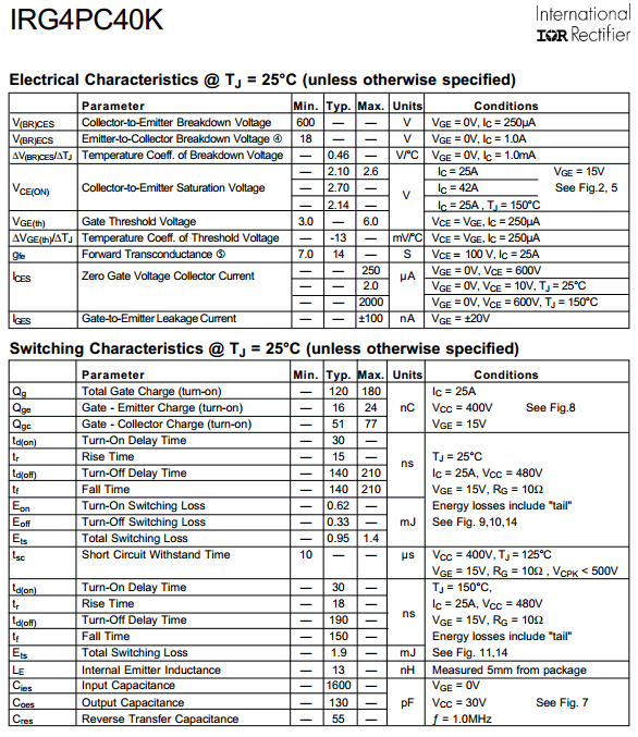 Function : IRG4PC40K, G4PC40K / Short Circuit Rated UltraFast IGBT / TO-247AC package