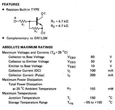Function : MEDIUM SPEED SWITCHING RESISTOR BUILT-IN TYPE NPN TRANSISTOR