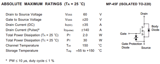 Function : SWITCHING N-CHANNEL POWER MOS FET