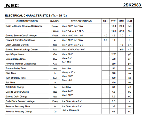 The 2SK2983 is N-Channel MOS Field Effect Transistor designed for high current switching application.