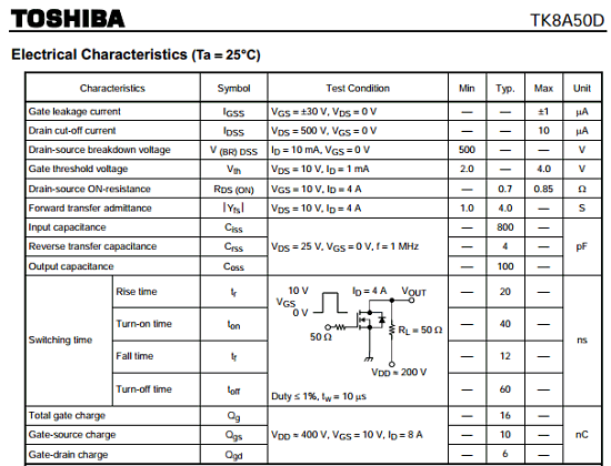 Function : TK8A50D , K8A50D / TOSHIBA Field Effect Transistor Silicon N Channel MOS Type
