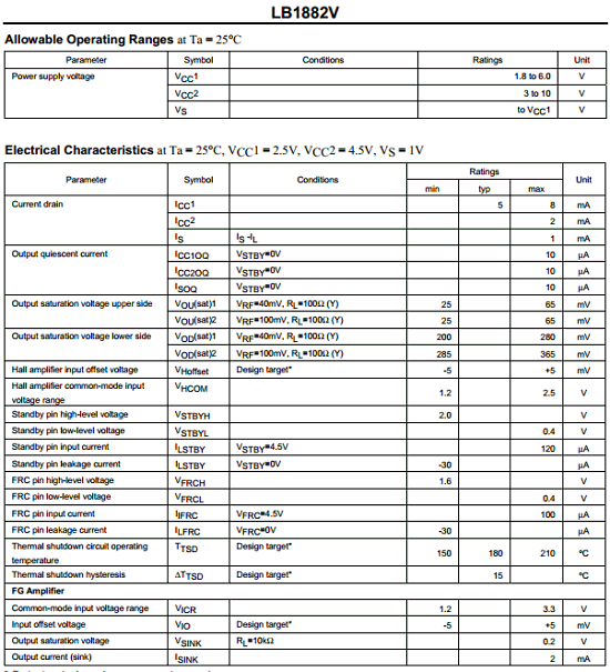 LB1882V is a 3-phase brushless motor driver IC that is optimal for driving the spindle motors in portable AV equipment such as DAT, CD and MD products.