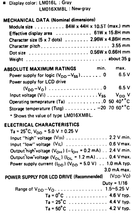 Part Number : LM016L