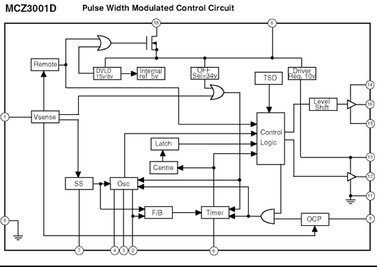 Function :MCZ3001D Pulse Width Modulated Control Circuit / DIP 18 Pin