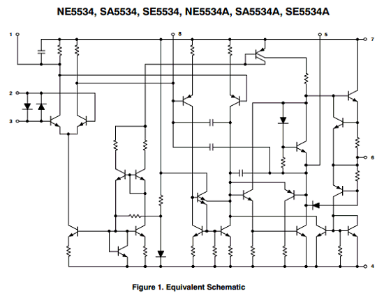The NE/SA/SE5534/5534A are single high-performance low noise operational amplifiers. Compared to other operational amplifiers, such as TL083, they show better noise performance, improved output drive capability, and considerably higher small-signal and power bandwidths.