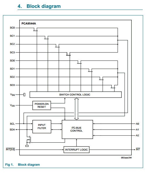 The PCA9544A is a 1-of-4 bidirectional translating multiplexer, controlled via the I2C-bus.