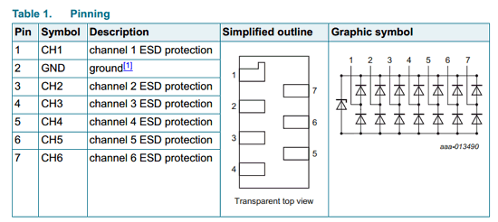 The device includes six high-level ESD protection diode structures for ultra high-speed signal lines and is encapsulated in a DFN2111-7 (SOT1358-1) leadless ultra small Surface-Mounted Device (SMD) plastic package.