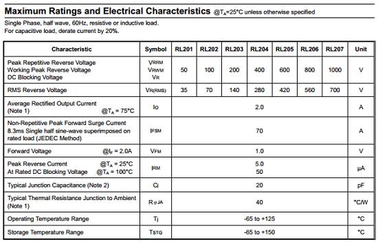 Function : 2.0A Standard Diode / RL201 Thru RL207 / DO-15 Molded Plastic