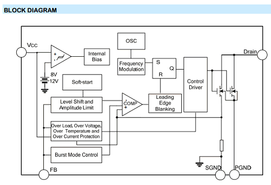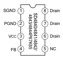 SD4840/4841/4842/4843/4844 is a current mode PWM controller with low standby power and low start current for power switch. In standby mode, the circuit enters burst mode to reduce the standby power dissipation.