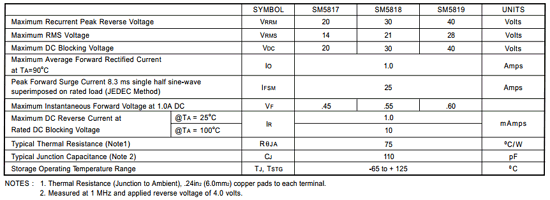 Function : 1.0 mA surface mount schottky barrier rectifier