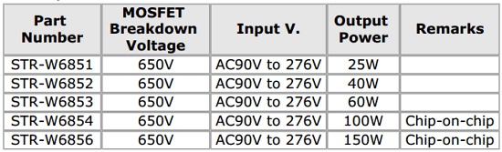 “STR-W 6800 Series ICs” for QuasiResonant SMPS with high efficiency and low noise that consume only one-tenth of the electric power compared with that of our conventional devices.