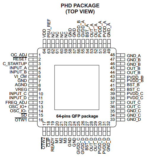 Function : 125W STEREO/250W MONO PurePath HD ANALOG-INPUT POWER STAGE / PHD (64-Pin QFP)