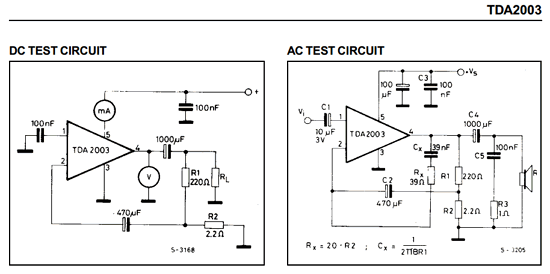 The TDA 2003 has improved performance with the same pin configuration as the TDA 2002.
