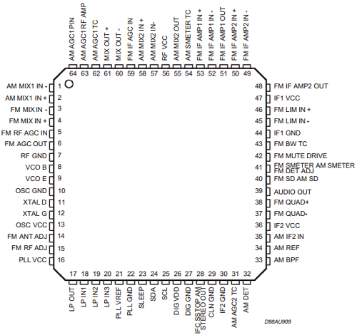 Function : HIGH PERFORMANCE FRONT-END IC FOR AM/FM RECEIVERS / TQFP64 Package