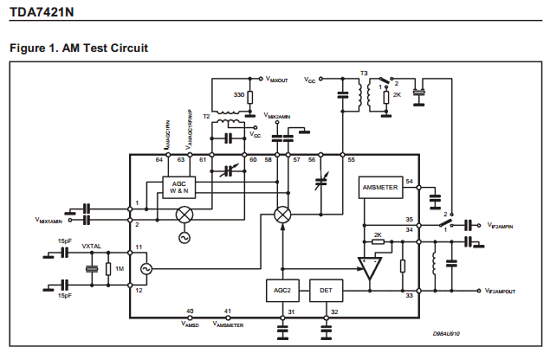 The TDA7421N is a high-performance tuner circuit which integrates AM and FM sections, PLL frequency sinthesizer and IF counter on a single chip.