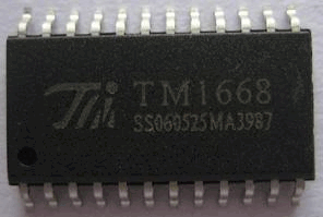 LED TM1668 is a scanning interface with a keyboard (light-emitting diode display) dedicated drive control circuit, the internal set Into the MCU digital interface, data latches, LED high voltage drive, keyboard scanning circuit. This product is excellent performance, quality Reliable. Mainly used in VCR, VCD, DVD and home theater products such as display drivers. Using SOP24, SSOP24, SKDIP24, SDIP24 the package.