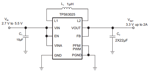 The TPS63025 are high efficiency, low quiescent current buck-boost converters suitable for application where the input voltage is higher or lower than the output. Output currents can go as high as 2A in boost mode and as high as 4A in buck mode. The maximum average current in the switches is limited to a typical value of 4A.