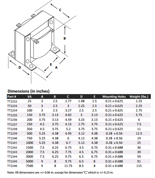 Function : TEMCo Control Transformer / TT2232 thru TT2246