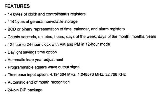 Function : Real Time Clock(With 114-Byte Sram) / DIP 24P